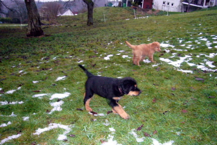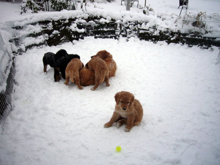 Das Nest ist leer. 5 kleine Hugenottentaler sind jetzt schon eine Woche in ihrem neuen zu Hause. Soweit wir bisher gehört haben, haben sich unsere Mäuse schon gut in den neuen Familien eingelebt und sorgen dort für frischen Wind. Wir müssen uns erst an die Ruhe in unserem Haus gewöhnen. Doch dafür, dass es bei uns nicht zu ruhig und langweilig wird, sorgt unsere kleine Amy. Wenn sie nicht gerade ihre Mutter ärgert, ist sie ein wahrer Sonnenschein! ;-) Sie ist ein sehr neugieriges und lebhaftes Energiebündel und hält uns alle auf Trab. Auf unseren Entdeckungstouren im Wald tapst sie an Anjous Seite und erkundet so die Welt - da ist sie ganz mutig. Wir freuen uns nun auf ein besinnliches Weihnachtfest im Kreise unserer Familie und wünschen all unseren (Hunde-)Freunden und Bekannten ruhige und fröhliche Weihnachten und ein glückliches gesundes neues Jahr. Wir freuen uns schon auf ein Familientreffen in 2009! Bis dahin alles Liebe, eure Familie Künkel!