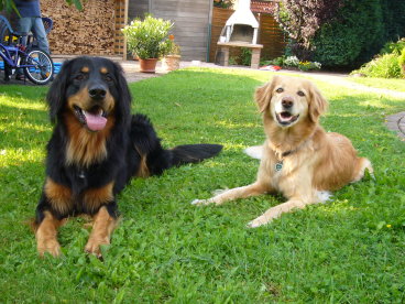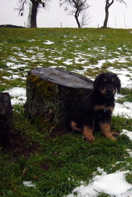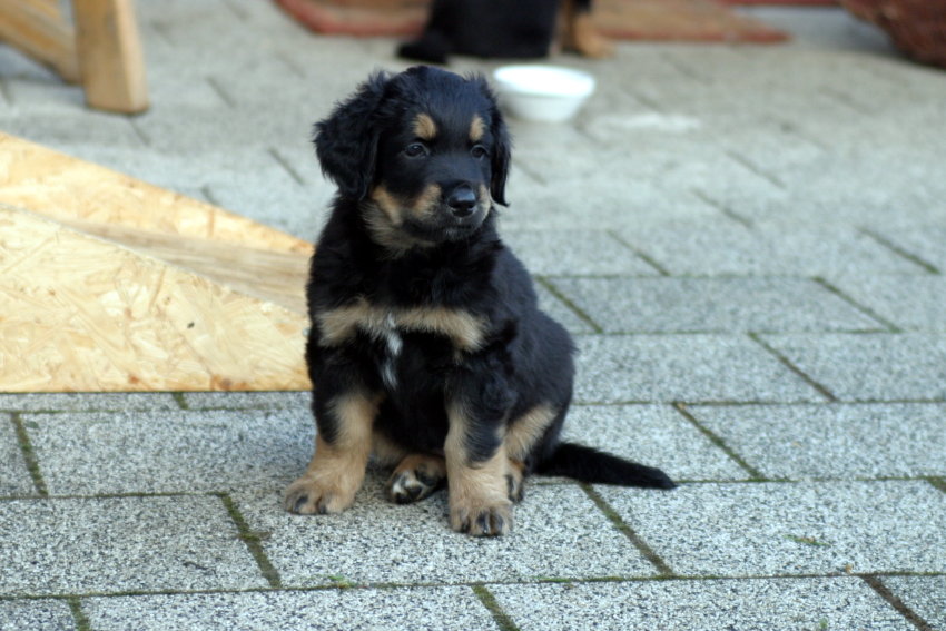 Das mit dem Essen klappt hervorragend. Der Napf ist immer gut mit grünem Pansen, frischem Fleisch, Gemüse oder Joghurt usw. gefüllt. Also eine sehr abwechslungsreiche Kost, die von uns uns immer schön weg geputzt wird. Wir wollen ja schließlich groß und stark werden - wie ein richtiger Hovi eben :-)